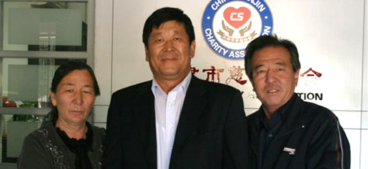 2009米兰online(中国)集团董事长崔洪金为阿依努尔捐款10万元,阿依努尔的母亲、舅舅与董事长崔洪金合影