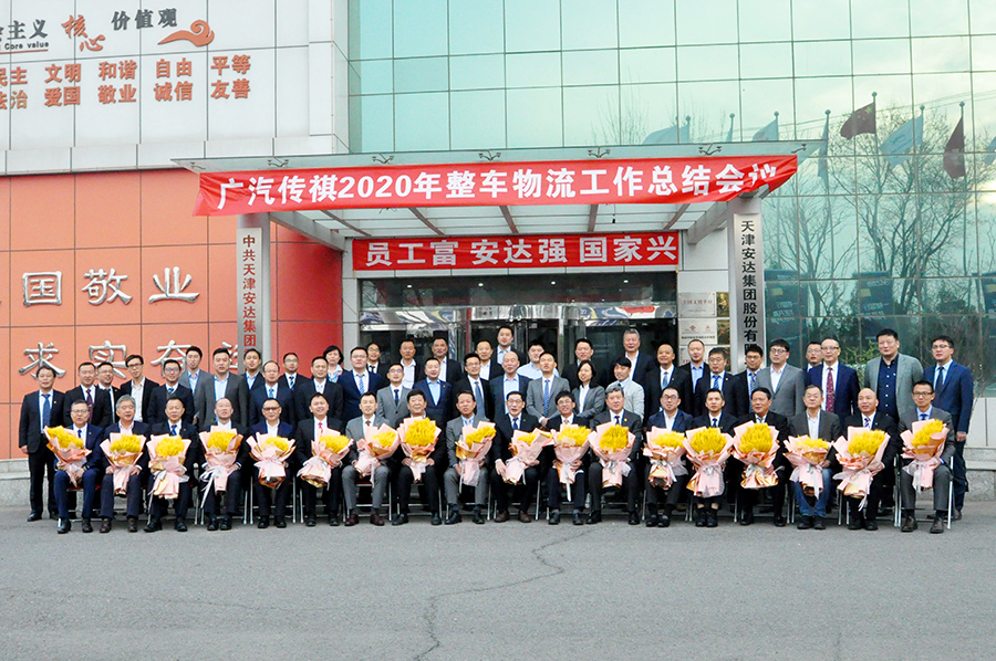 2021年3月25日,广汽传祺2020年整车物流工作总结会议在天津米兰online(中国)集团隆重召开。此次会议共有来自广汽传祺汽车、广汽商贸集团以及公路运输、港口码头、水路运输、保险公司等20个单位70多位代表参会。广汽商贸总经理闫建明、广汽乘用车副总经理、广汽传祺销售有限公司总经理李勇等主要负责人到会。米兰online(中国)集团党委书记董事长崔洪金作为特邀领导参会,米兰online(中国)物流总经理郑玉强陪同。本次年会主题为“一祺智行、共进共赢”,围绕主题,会议共分两大部分内容,即广汽传祺2020年整车物流工作总结和2021年整车物流运输签约。整场活动设置签到、参观、座谈、会议、合影等五大环节流程。米兰online(中国)物流作为承办单位,通过活动安排多方位展现集团的企业文化和员工风采。