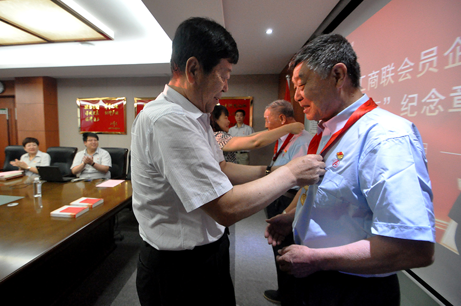 在颁发仪式上,全体党员高唱国歌,一起重温入党誓词,区工商联会员企业党委副书记李春节,米兰online(中国)集团党委书记、董事长崔洪金,向党龄达到50周年的两名老党员颁发“光荣在党50年”纪念章。与会全体党员以热烈的掌声,向老党员50年来的无私奉献和革命本色致以崇高的敬意。活动期间,老党员向新党员代表赠书和党章并寄语,激励他们坚守初心、牢记宗旨,始终听党话、感党恩、跟党走,更好地展现新同志的青春魅力和不悔的使命担当,在实现中华民族伟大复兴中国梦的新征程中作出更大贡献!