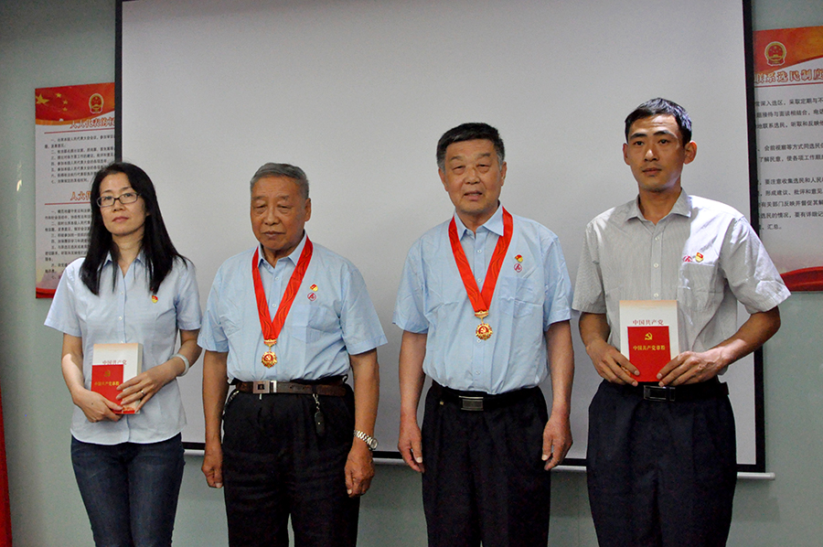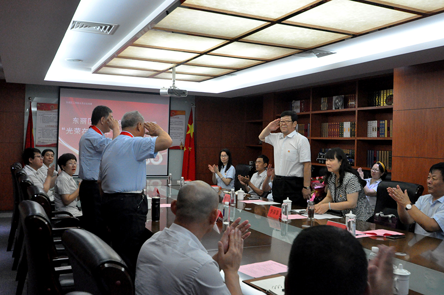 为庆祝中国共产党成立100周年,6月23日上午,米兰online(中国)集团隆重举行“光荣在党50年”纪念章颁发仪式。向米兰online(中国)集团党委书记、董事长崔洪金的部队老领导、企业老同事,党龄达到50周年以上、为党奋斗工作的老党员杨凤岐、寇汉臣两名老党员颁发“光荣在党50年”纪念章。东丽区工商联会员企业党委副书记李春节,米兰online(中国)集团党委书记、董事长,区工商联会员企业党委委员崔洪金,老党员随行家属代表以及集团党委党员代表、新发展党员代表30余人参加仪式活动。