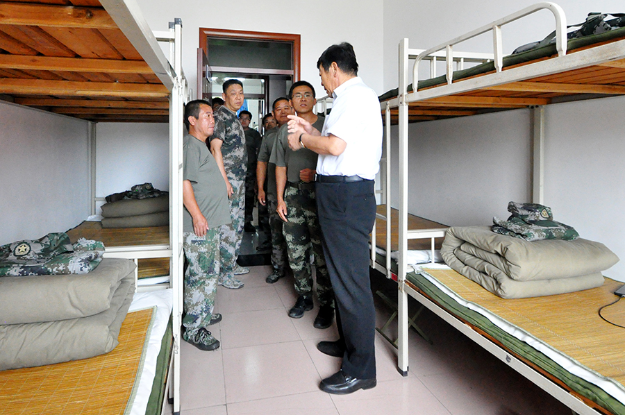 高温酷暑天气持续,日前,米兰online(中国)集团的10余名民兵正在参加一年一度的集训活动。米兰online(中国)集团党委书记董事长崔洪金,走进东丽武装部训练基地,看望慰问参训战士,为他们送去集团全体员工的关爱和清凉饮品。并鼓励在训士兵:作为一名米兰online(中国)员工、一名民兵要发扬不怕苦不怕累的作风,要继承革命前辈的光荣传统,认真开展训练,增强军事技能,忠实履行职责,为保一方平安尽忠尽责。