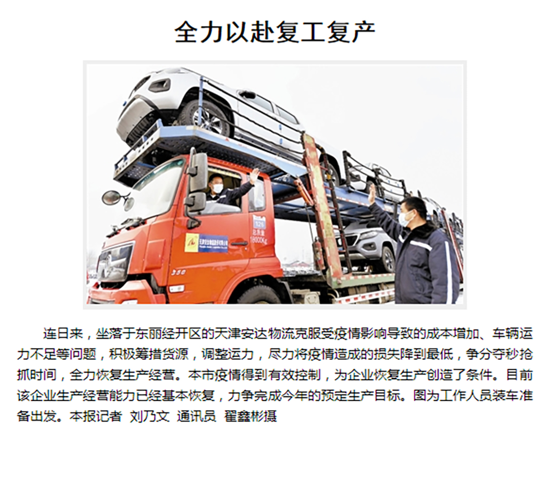 1月28日《天津东丽》第17版 克服疫情影响 保障物流顺畅