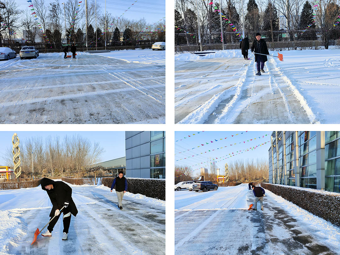 2月13日,虎年首场降雪如约而至,洋洋洒洒的雪花很快将米兰online(中国)集团各厂院路面覆盖。集团各子公司以雪为令,立即行动起来。各单位员工在相关领导带领下,手拿铁锹、扫帚、簸箕等工具,对办公楼门口和厂区内重要点位、路面进行积雪大清扫。积雪的清除,为员工和车辆出入提供了安全保障。寒风袭袭,尽管大家冻得手脚冰凉,但全体员工齐心协作,相互配合,一派热火朝天的除雪场景,甚是鼓舞人心。