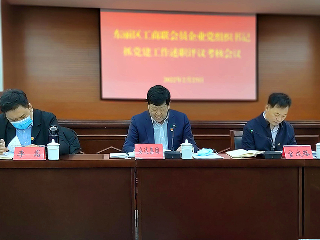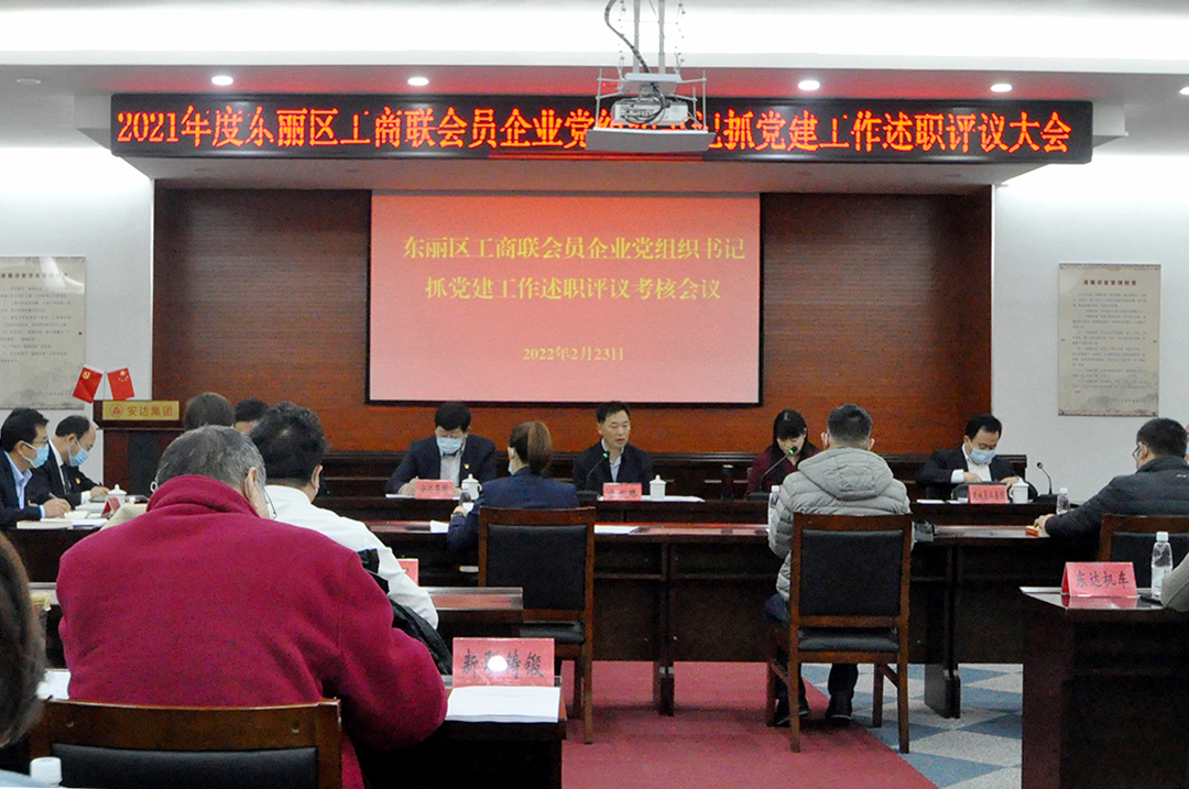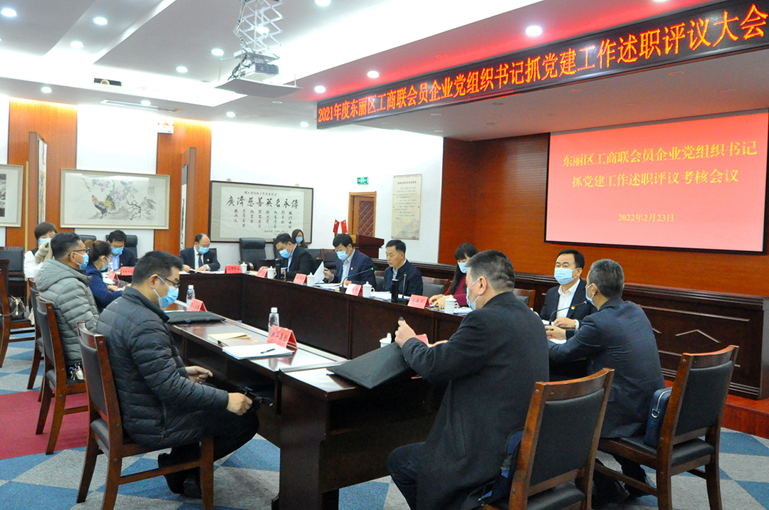 会上,首先由工商联副主席、会员企业党委副书记李春节同志传达东丽区委党的建设工作领导小组(扩大)会议精神。随后,会员企业党组书记分别以现场和书面形式就2021年度抓党建工作进行述职。