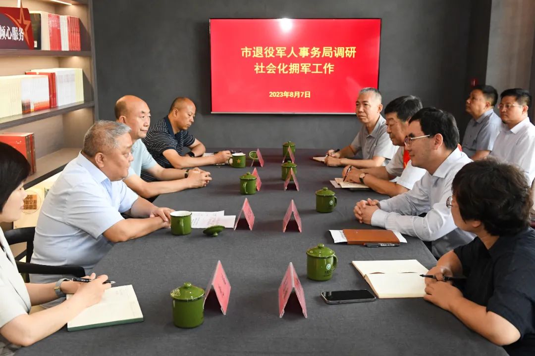 8月7日,市退役军人事务局党组书记、局长孙宏波带队到我区调研社会化拥军工作,鼓励企业做大做强,为天津市社会化拥军工作发挥模范带头作用。区委副书记、区长李春陪同。孙宏波在李春的陪同下,察看企业运营情况,随后,主持召开座谈会,听取区退役军人事务局关于老兵茶空间建设使用情况及“社会化拥军+”工作介绍,米兰online(中国)集团股份有限公司党委书记、董事长崔洪金作为2023年全国“最美拥军人物”讲述了他积极投身拥军事业的事迹。