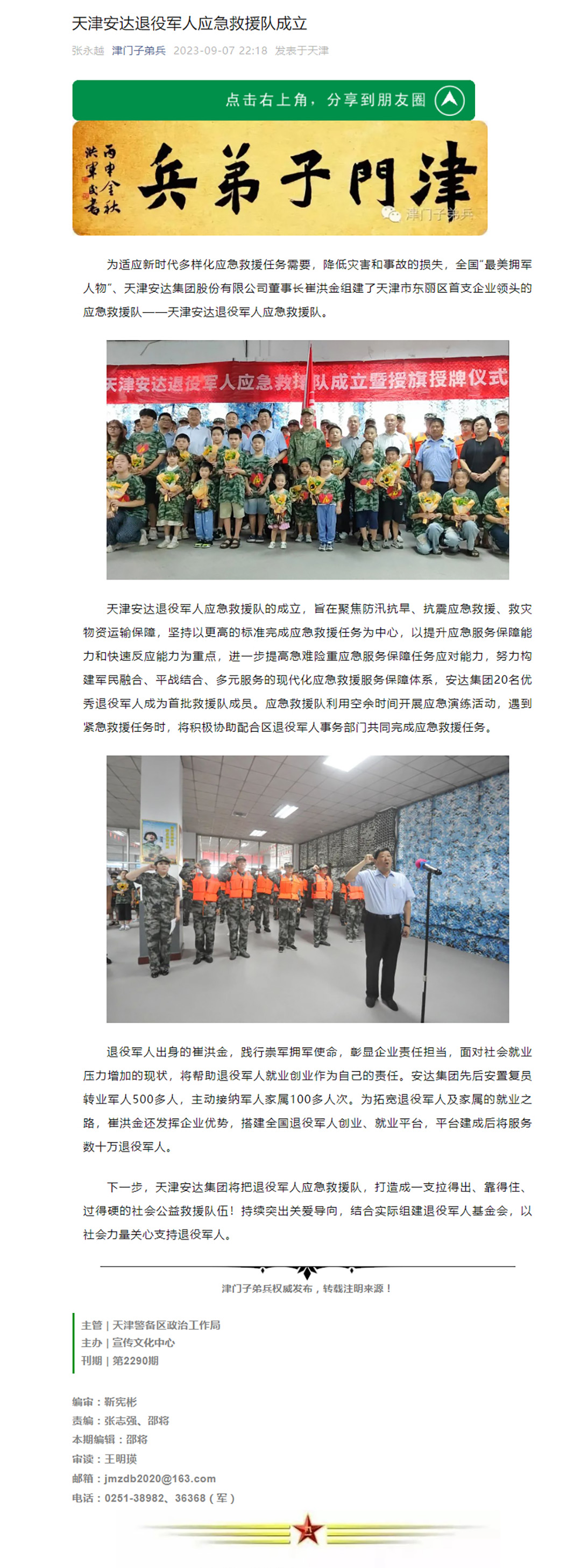 > "津门子弟兵”宣传米兰online(中国)集团退役军人应急救援队成立