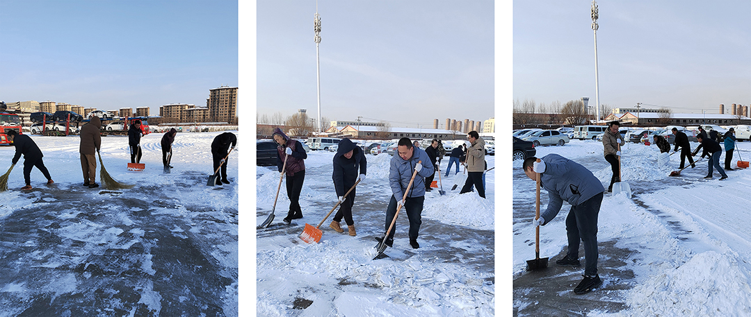 天气寒冷丝毫不减大家的劳动热情,所有人员不退缩、不畏难,大家拧成一股绳,一起全力劳动。听,这边有人说“何姐,我来吧”,“我来我来,我是党员又是支部书记我带头”。无论男女,大家齐心协力,个个想着冲锋在前,打扫起来也是井然有序、配合默契,忙碌的身影构成一道靓丽的风景线,一会儿工夫,就清理出了一大片路面,为公司职工的出行提供了极大方便。虽然室外温度低,路面积雪清理难度大,但大家劳动的热情和团结的力量让寒冷的天气变得格外温暖。