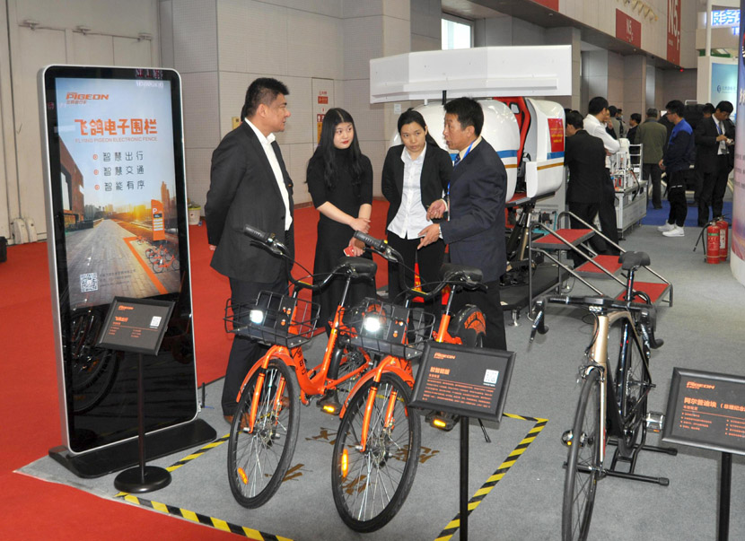 米兰online(中国)集团子公司天津安中通讯电子有限公司研发的安中电子围栏配合共享单车“飞鸽出行”项目,分别在飞鸽展区和东丽展区展出。作为智慧出行的最新产品,安中电子围栏集智能出行、精准停放、有序管理于一体,对城市共享单车的乱停乱放问题做到根本治理,得到参观人员的高度好评。