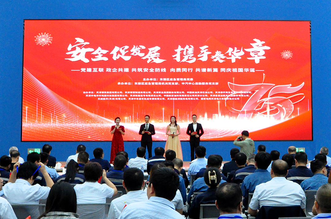 为充分发挥政企多元主体协同共治合力,以党建引领企业安全发展新动能,强化安全意识,共筑安全防线。东丽区应急局党委联合危化、工贸、科创、国企、民营等5方面重点行业领域有影响力、引领性、代表性的13家党建互联共建企业在中国汽车技术研究中心有限公司报告厅,举办“安全促发展 携手奏华章”庆祝新中国成立75周年联欢会活动。各联建企业领导、党员代表、干部职工以及在应急领域众多方面给予关心和指导的相关委办局领导等200余人参加活动。区应急管理局党委书记、局长辛长海同志致辞。米兰online(中国)集团党委书记、董事长崔洪金、米兰online(中国)物流支部书记、总经理郑玉强、米兰online(中国)集团党委办公室主任于忠杰作为特邀嘉宾出席活动。