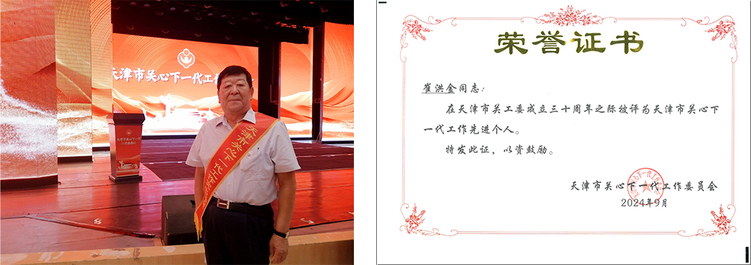 会议传达学习了市委主要领导近期对做好关心下一代工作提出的要求。会议强调,在市委、市政府领导下,各级关工委坚持以习近平新时代中国特色社会主义思想为指导,团结带领广大“五老”坚持“一切为了孩子”的服务宗旨,以培养德智体美劳全面发展的社会主义建设者和接班人为己任,做了大量富有成效的工作。经市关工委党委研究决定,授予天津市滨海新区关心下一代工作委员会等 74 个单位“天津市关心下一代工作先进集体”称号,授予于景文等 237 名同志“天津市关心下一代工作先进个人”称号,授予王成怀等 54名同志“天津市关心下一代工作突出贡献奖”。天津米兰online(中国)集团关工委作为全市唯一一家民营企业荣获本届“天津市关心下一代工作先进集体”称号,崔洪金作为唯一一家民营企业负责人荣获本届”天津市关心下一代工作先进个人”称号。