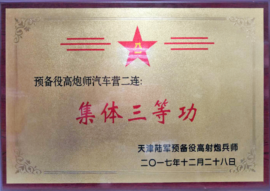 同时,为表彰预备役高炮师汽车营二连日常刻苦训练,严肃风纪,积极承当各项任务。中部战区陆军政治工作部、纪律检查委员会,特授予天津陆军预备役汽车营二连“战区陆军基层风气建设先进单位”称号。