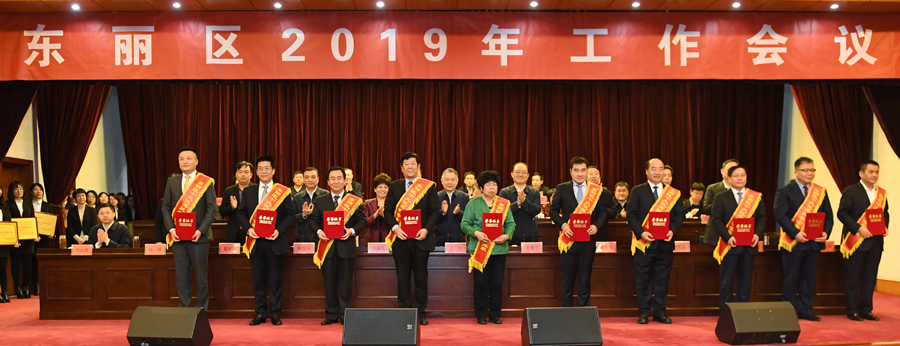 2月20日下午,我区召开2019年工作会议,认真贯彻习近平新时代中国特色社会主义思想和党的十九大精神,深入落实习近平总书记在天津考察工作和京津冀协同发展座谈会上的重要讲话精神,按照市委十一届五次全会和区委十一届九次全会要求,对今年全区各项重点工作任务进行再动员、再部署,进一步统一思想、凝心聚力,顽强拼搏、扎实苦干,奋力开启东丽绿色高质量发展新征程,推动美丽东丽建设再上新水平。区委书记夏新,区委副书记、区长孔德昌,区人大常委会主任孙富霞,区政协主席李大勇等区领导出席,米兰online(中国)集团党委书记董事长崔洪金作为十大优秀民营企业家之一参会并上台领奖。
